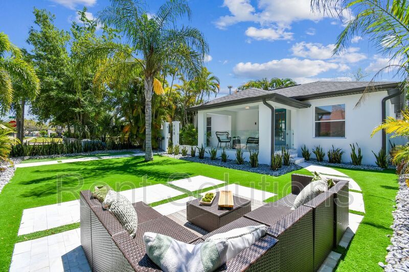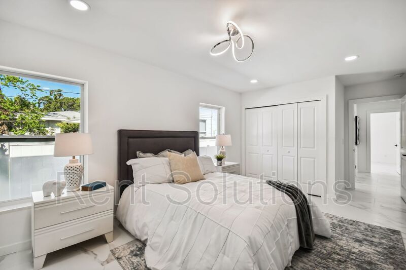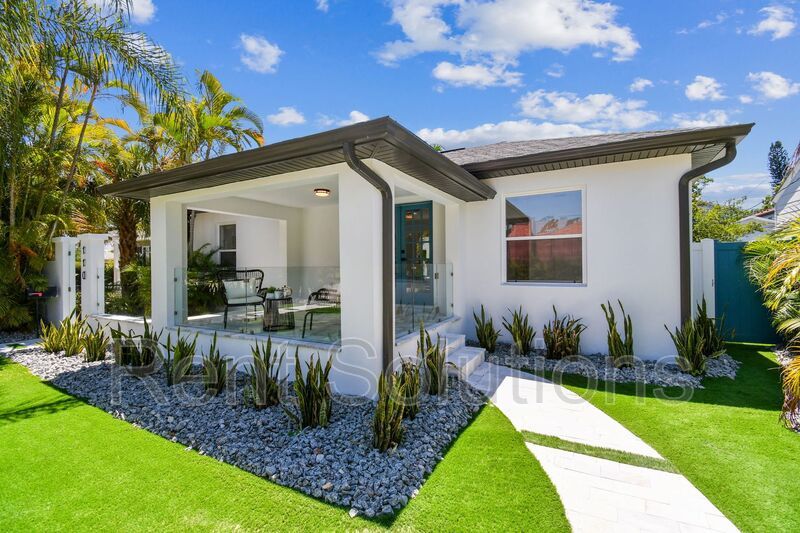 Discover this exceptional duplex-style residence, ideally situated in the coveted Old Northeast neighborhood just off 28th Ave. adjacent to Coffee Pot Bayou. Annual/Unfurnished Rental. One small dog ok, sorry no cat. Boasting 2 bedrooms and 2 bathrooms, the home welcomes you with a stunning front yard, perfect for entertaining or unwinding with loved ones. Ascend a few steps to the refined front porch patio, an ideal spot for placing chairs and savoring your morning coffee. Beyond the french doors, an open and airy floor plan seamlessly connects the living, dining, and kitchen areas. The kitchen exudes modern elegance with sleek fixtures, white large tile flooring adorned with subtle gray streaks, and freshly painted white walls. A culinary haven awaits with floor-length white cabinetry, gold fixtures, stainless steel appliances, a gas stove, white marble countertops, and a captivating backsplash that complements the overall color scheme. The island offers additional seating, while a separate dining nook enhances the space. Journey through the hallway to discover two bedrooms. The primary bedroom features his and her closets, an en suite bathroom with a barn door-style covering, dual vanity sinks, a spacious walk-in shower, and a garden tub for indulgent relaxation. The second bedroom, conveniently located nearby, showcases modern light fixtures, built-in cabinetry in the closet, and an adjoining bathroom with a walk-in shower. A sizable storage closet with a full-size washer and dryer adds convenience to the hallway. Through sliding glass doors off the dining area, a patio area awaits with a privacy fence. This home boasts an impeccable, modern design that creates a luxurious atmosphere throughout you do not want to miss. Plenty of street parking out front. In the heart of the timeless Old Northeast neighborhood, this residence provides access to the charms of St. Petersburg's cherished community. Take leisurely walks to Coffee Pot Bayou, a haven for relaxation and outdoor enthusiasts. Immerse yourself in the vibrant local scene with shops, dining, and the cultural delights of downtown St. Petersburg just steps away. Lawn Maintenance and Pest Control Exterior is included in the rent, making your life hassle-free. All other utilities other than cable/internet, will remain in the owner's name and be billed back to the tenants. Schedule your viewing to see this amazing property!