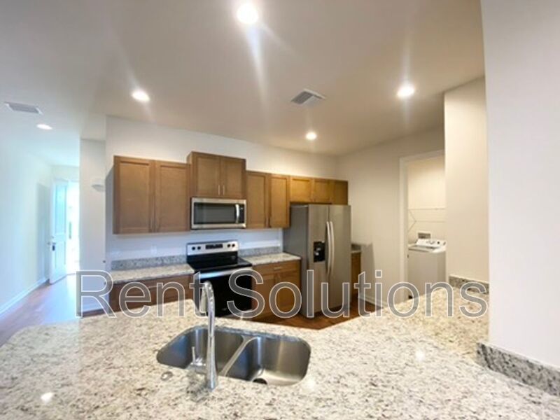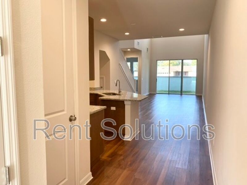 Don’t miss this incredible opportunity to lease a spacious and stylish townhome in the gated community of Santorini Trace. Offered as an unfurnished annual rental, this 3-bedroom, 2.5-bath home blends modern elegance with everyday functionality. Step inside and enjoy rich hardwood floors throughout the main living areas, while the plush carpeted bedrooms provide a cozy retreat. The kitchen is a dream, featuring granite countertops, stainless steel appliances, and an open layout perfect for cooking and entertaining. The first-floor primary suite includes dual walk-in closets and a luxurious en-suite bath with his-and-hers vanities and a walk-in shower. Also on the main floor: a convenient half bath, indoor laundry room with full-size washer and dryer, and sliding glass doors leading to a patio and small yard. Upstairs, a versatile loft space can be used as a home office, playroom, or additional lounge area. Two generously sized bedrooms and a full hallway bath with a tub complete the second floor. Small pets welcome with a $350 non-refundable fee per pet. As a resident of Santorini Trace, you'll enjoy resort-style amenities including walking paths, a community pool, and a cabana area. The location is unbeatable—close to grocery stores, hospitals, shopping, dining, and entertainment with easy access to major roads. Don't miss out on this amazing opportunity – schedule your viewing today.