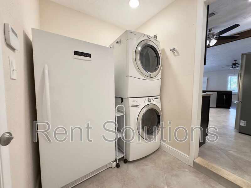 Large Utility Room with full size stacked washer/dryer and extra fridge.
