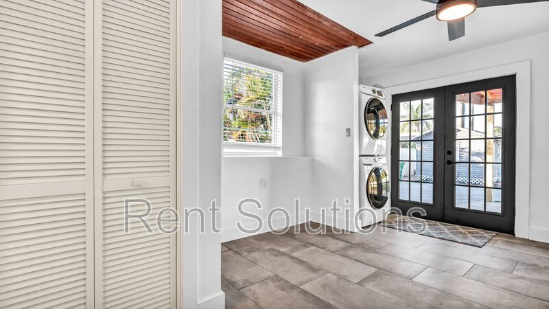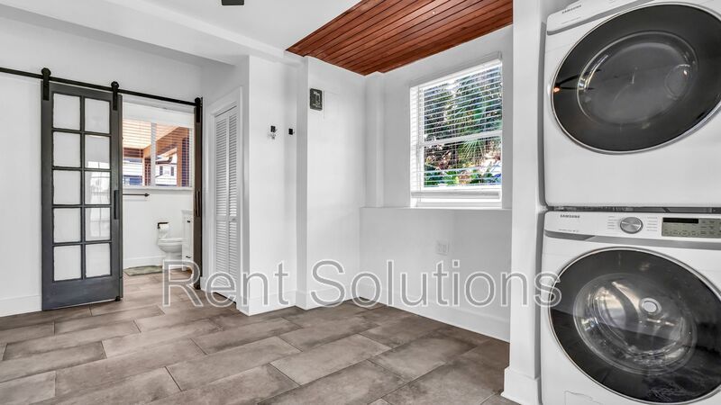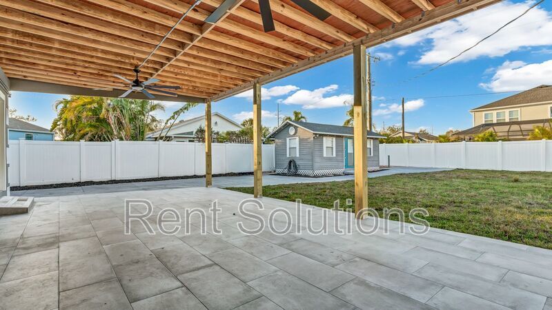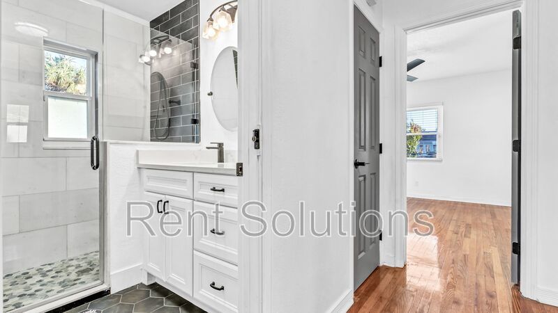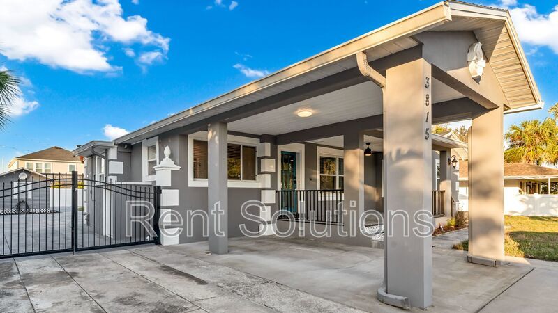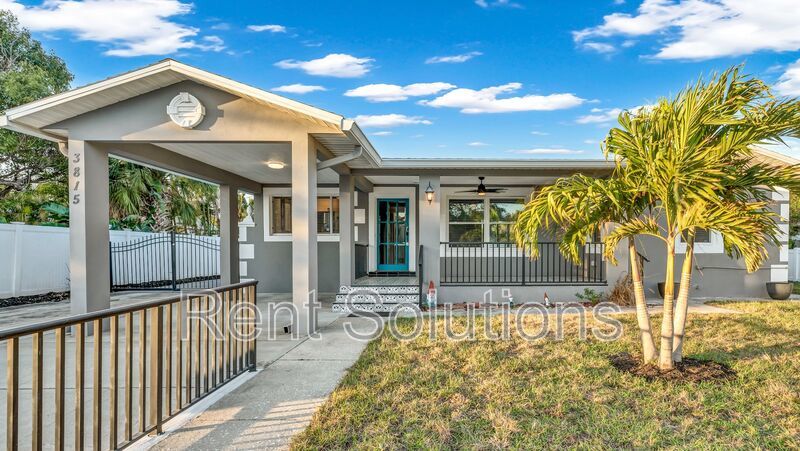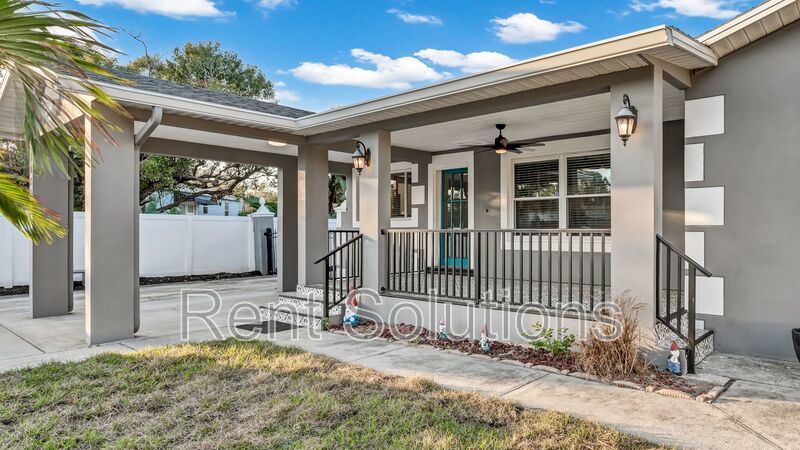 $500 OFF FIRST MONTHS RENT & FREE APPLICATION FEES UP TO $150 FOR ANY APPROVED APPLICANTS. This beautifully remodeled 3-bedroom, 2-bath home is located in the heart of South Tampa and offers a perfect blend of comfort and convenience. Featuring a desirable split-bedroom floor plan, the home includes covered parking, a spacious front porch, a covered patio, and an oversized fenced yard. Hardwood and ceramic tile flooring flow throughout, adding both charm and durability. Step onto the inviting front porch, ideal for enjoying the Florida weather, and enter the large family room, which seamlessly connects to the kitchen and dining area. The kitchen boasts light-colored cabinets, granite countertops, and ample storage and counter space, while the dining area features ceramic tile and sliding glass doors leading to the covered patio. Off the living area, a hallway leads to two generously sized bedrooms, a storage closet, and a remodeled bathroom with a walk-in shower. On the opposite side of the home, step down into the third bedroom, which includes an en-suite bath with a walk-in shower and French doors opening to the covered patio. A full-size front-loading washer and dryer add to the home's convenience. The expansive covered patio, complete with ceramic tile and ceiling fans, overlooks the oversized fenced yard, which features a detached air-conditioned studio—ideal for a home office, gym, or climate-controlled storage. The property also includes a gated parking pad, perfect for a boat or jet skis. Conveniently located near I-275, the Howard Franklin Bridge, Veterans Expressway, top-rated schools, shopping, and dining, this home is a must-see. Call now to schedule a viewing!