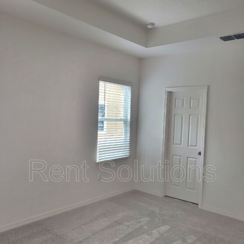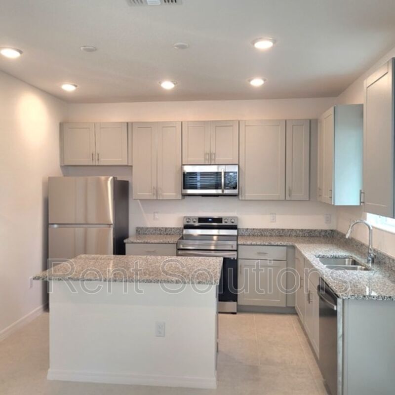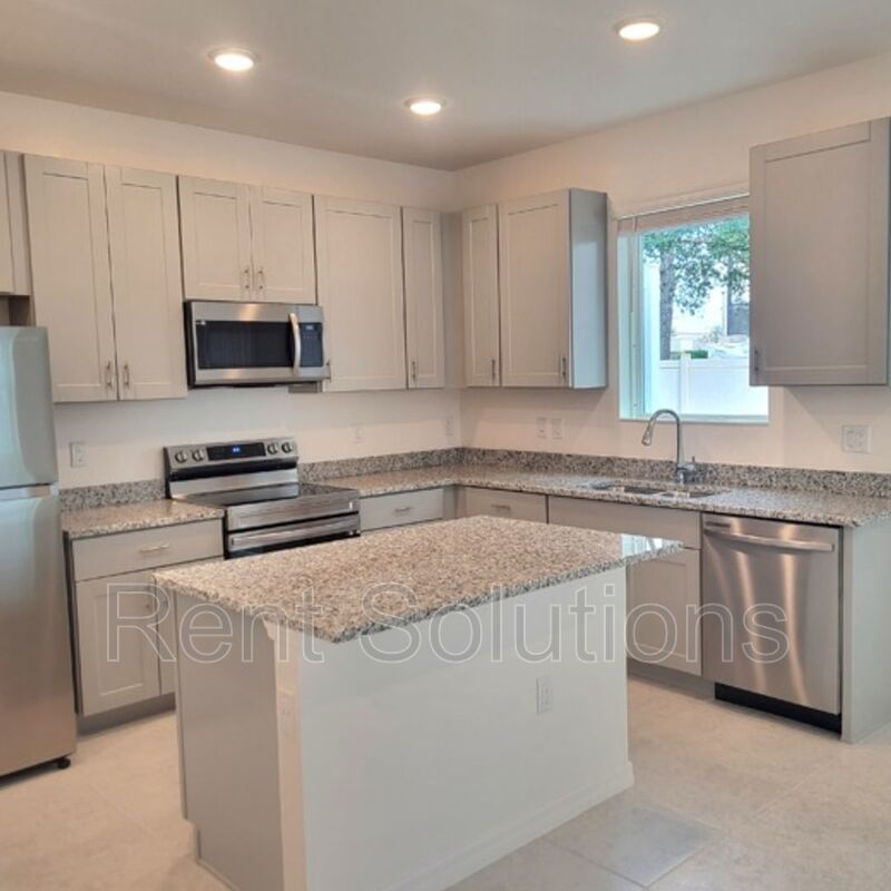 Large 3 bedroom, 2.5 baths Townhome featuring a large patio off the kitchen and 2 car garage equipped with a car charger for your Electric Vehicle needs. Additional guest parking conveniently located right in front this unit. The Energy efficient townhome in Wesley Chapel is an A rated school district at The Wyndrush Creek community . The home features upgraded ceramic flooring throughout first floor, upgraded 42" cabinets and upgraded granite countertops throughout kitchen and bathrooms. The Second floor's Loft is ideal for a Family room to enjoy Movie nights, Kids zone, workout area or a home office. The Master bedroom includes tray ceiling and large walk in closet. For your convenience the home offers smart home package, WIFI thermostat, WIFI front door deadbolt, Skybell doorbell, 2" faux wood interior blinds, brick paved driveway, walk way, porch and patio. Energy efficient A/C unit, energy friendly double pane insulated Low Energy vinyl windows. Stainless steel appliances , refrigerator and washer & dryer are included with the affordable rent ! The community is set back in a quiet secluded location which offers walking distance to community pool and cabana. The location will keep you in the Wesley Chapel area near the expressway, shopping, restaurants, golf and entertainment and provides easy access to Wiregrass Mall and all that Tampa has to offer.