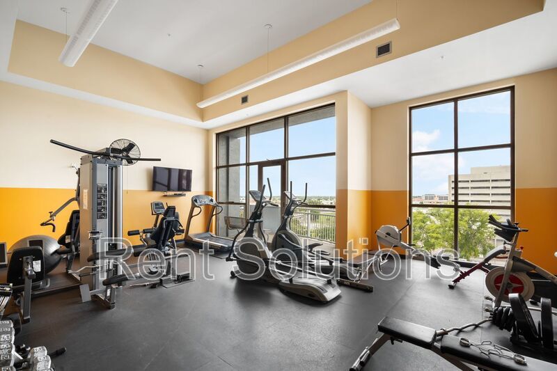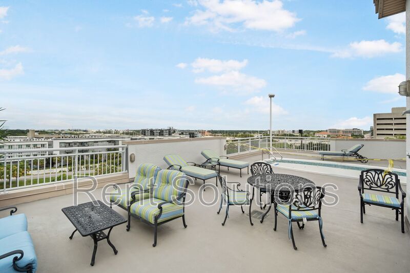 Community amenities include secure building entry, a gated parking garage with two assigned spaces, an assigned storage unit, a fitness center, rooftop pool, and a resident lounge with stunning city views available for private events.