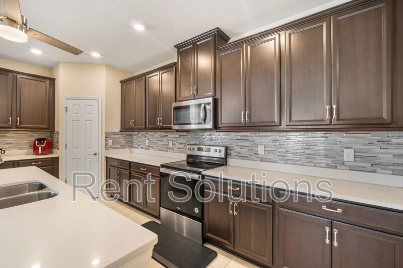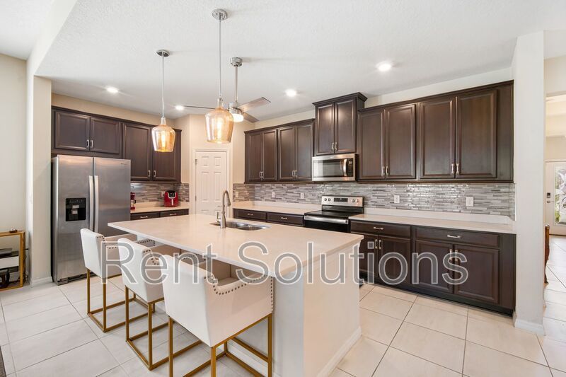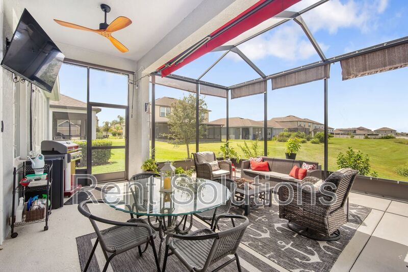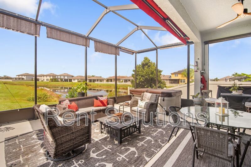 This solar-powered 4-bedroom, 2-bathroom home in the desirable Pradera Community offers little to no electric bill, combining modern comfort with energy savings. With 2,220 sq. ft. of thoughtfully designed living space and a 2-car garage, this residence provides both functionality and style. The open-concept kitchen, dining, and living area boasts an expansive island and abundant cabinetry, creating the perfect setting for both everyday living and entertaining. The master suite is a true retreat with two spacious walk-in closets and a large glass-enclosed shower. A generously sized screened-in lanai with a power sunshade extends your living space outdoors, ideal for relaxation or gatherings. For added convenience, lawn care and pest control are included in the lease. Community amenities include a resort-style pool, two half basketball courts, and a playground. With close proximity to shopping, dining, and major highways, this home balances lifestyle, convenience, and efficiency.